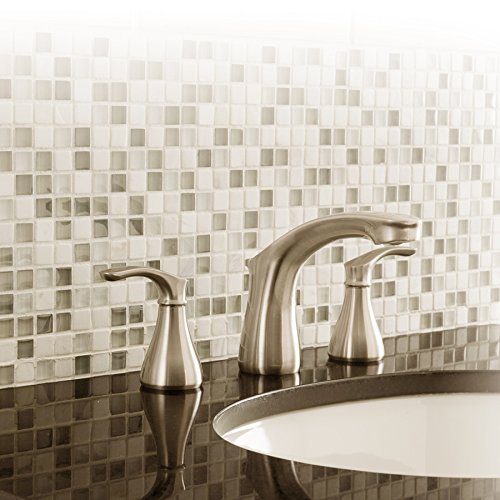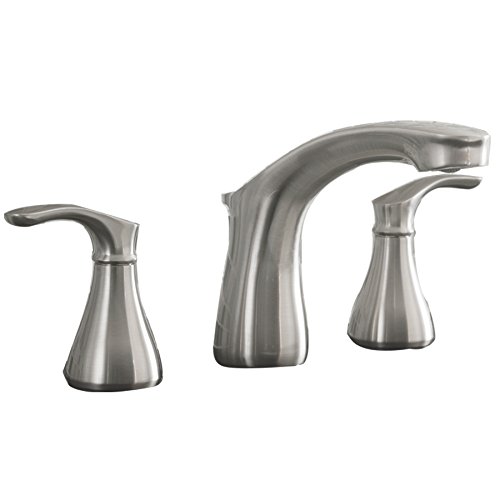 - Brushed nickel finish widespread bathroom faucet from the Garner collection features sweeping curves for a graceful look