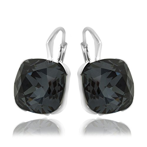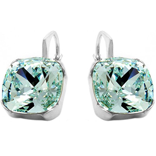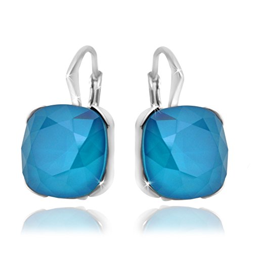 Drop earrings with lever back findings for pierced ears. The drop earrings are medium size and that makes them suitable as drop earrings for women and drop earrings for girls. These cushion cut earrings adorned with crystals from Swarovski earrings are not Swarovski earrings (final product). Crystals from Swarovski are used only as an ingredient to craft these leverback earrings.