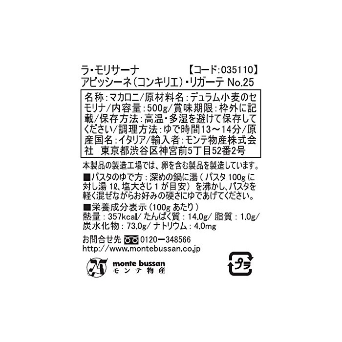 La Molisana 《라모리사나》 《아빗시네리가테》 (No.25) 500g