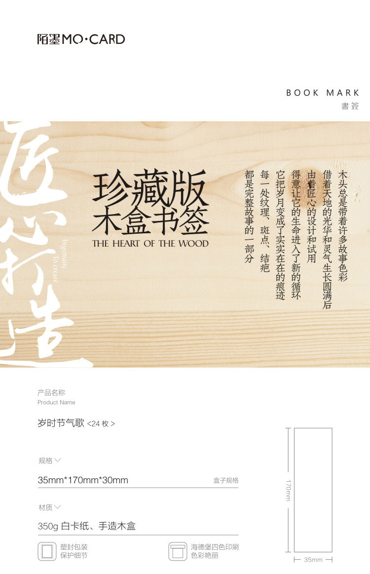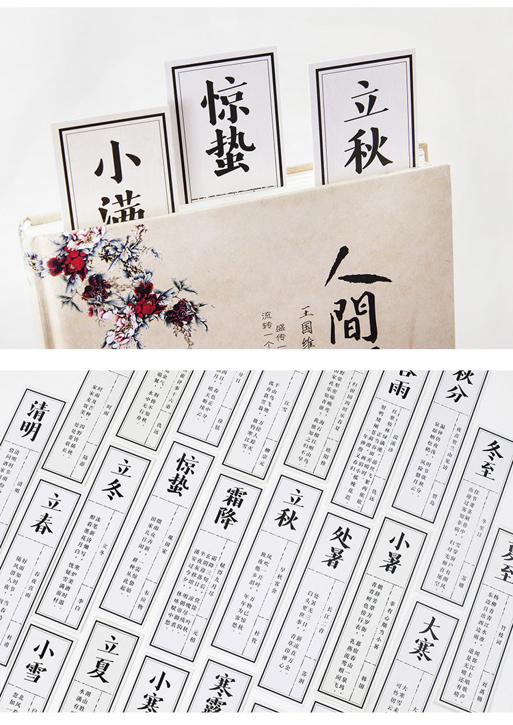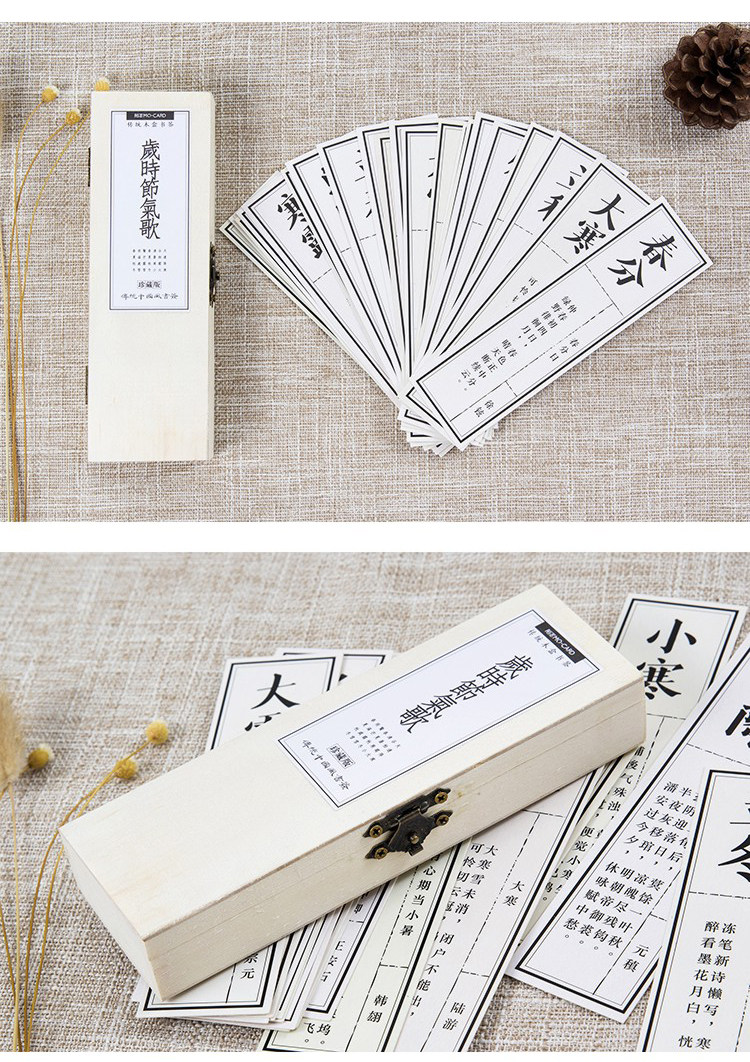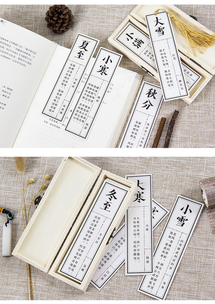 古风二十四节气木盒书签 diy笔记本手帐卡片精美礼盒装饰卡纸