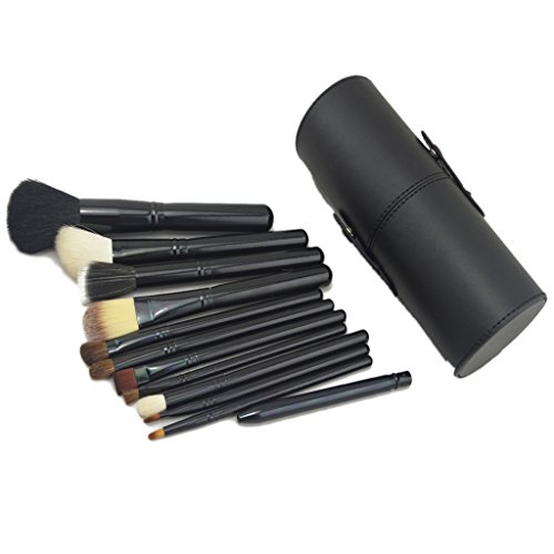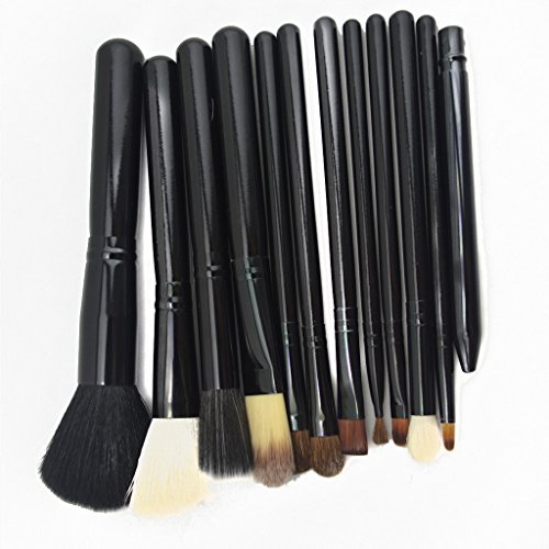 -. Feature : Total 12 professional makeup brushes including Powder Brush, Foundation Brush, Eyeshadow Brush, Lip Brush, Eye Liner Brush and so forth. / Bristle is made of high quality material, with soft and comfortable touch feeling and can provide superb ability to hold powder, pleasing for your skin. / The wood-made handle is smooth, beautiful, and durable and comfortable to use. / Easy to carry: The beautiful cup holder with small size and light weight is designed for holding all brushes, making your dressing table neat and elegant. / An essential for not only professionals but also home users.