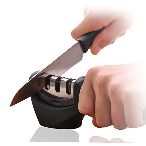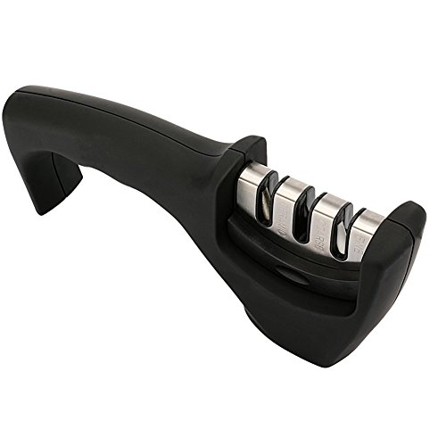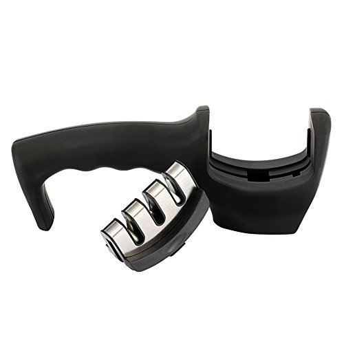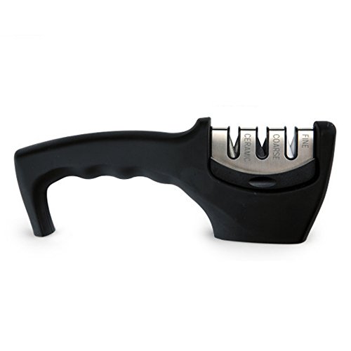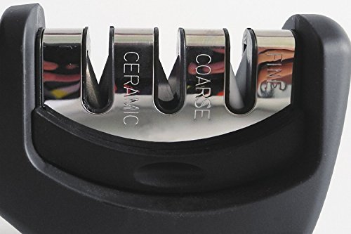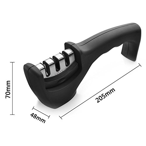 DANUC EASY KNIFE SHARPENER, SOFT GRIP 3-STAGE PROFESSIONAL KNIFE SHARPENING SYSTEM | SHARPENS BOTH STEEL & CERAMIC KNIVES IN ALL SIZES, BLACK
