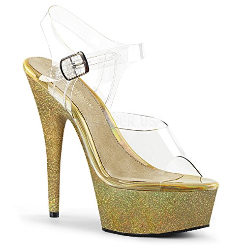 Product DescriptionDELIGHT-608HG/C/GHG features 6"(152mm) Heel, 1 3/4"(45mm) Platform Ankle Strap Sandal Featuring Mini Holographic Glitter Bottom0