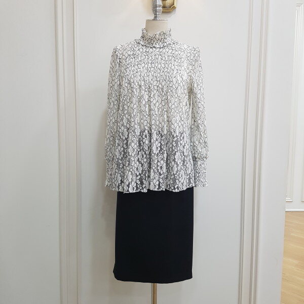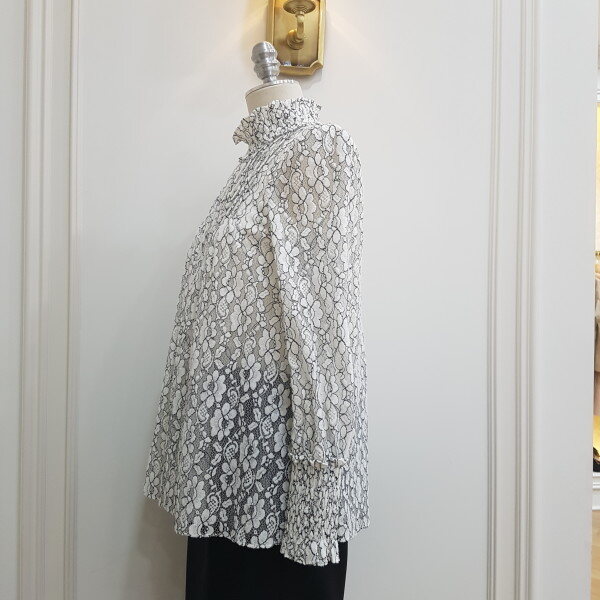 여성스러운 네크선과 손목진주장식이 포인트인 레이스 블라우스 입니다.