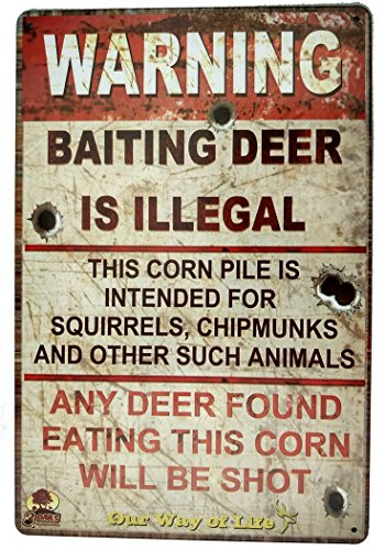 Ochoice Warning Signs Retro Road Signs with Baiting Deer is Illegal Sign 8"X12"