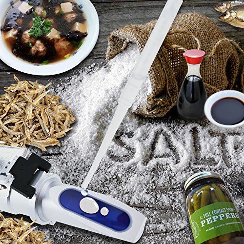 Salinity Refractometer w/ ATC 0-28%, 0-280 ppt of NaCl, Measuring Sodium Chloride in Food, Salt, Seawater, soy sauce, Brine 0.2% division, made of ALUMINUM, with LED light and Pipettes
