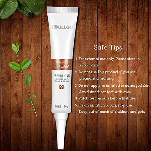 SAFE TIPS: Before you use the Acne cream, you can take a little on the inside of the wrist, or behind the ears, half an hour after the adverse reactions. On the contrary, over 10-15 minutes, you can apply the Acne cream.