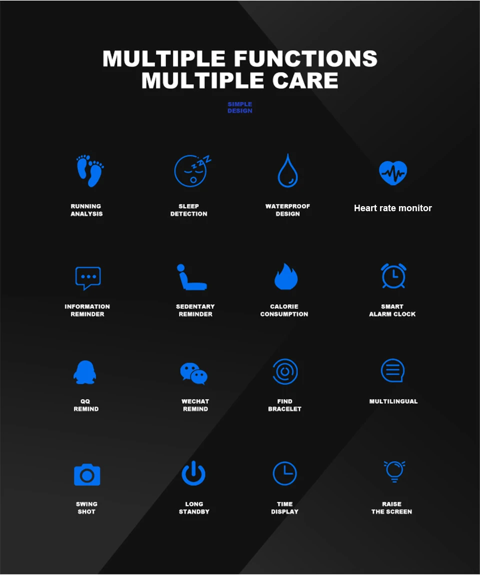 Function:Passometer,Sleep Tracker,Small Second,Heart Rate Tracker,Tourbillon,Perspective Window,24 hour instruction,Fitness Tracker,Message Reminder,Interactive Music,Calendar,Power Reserve,Push Message,Alarm Clock,Remote Control,Month,Week,Call Reminder