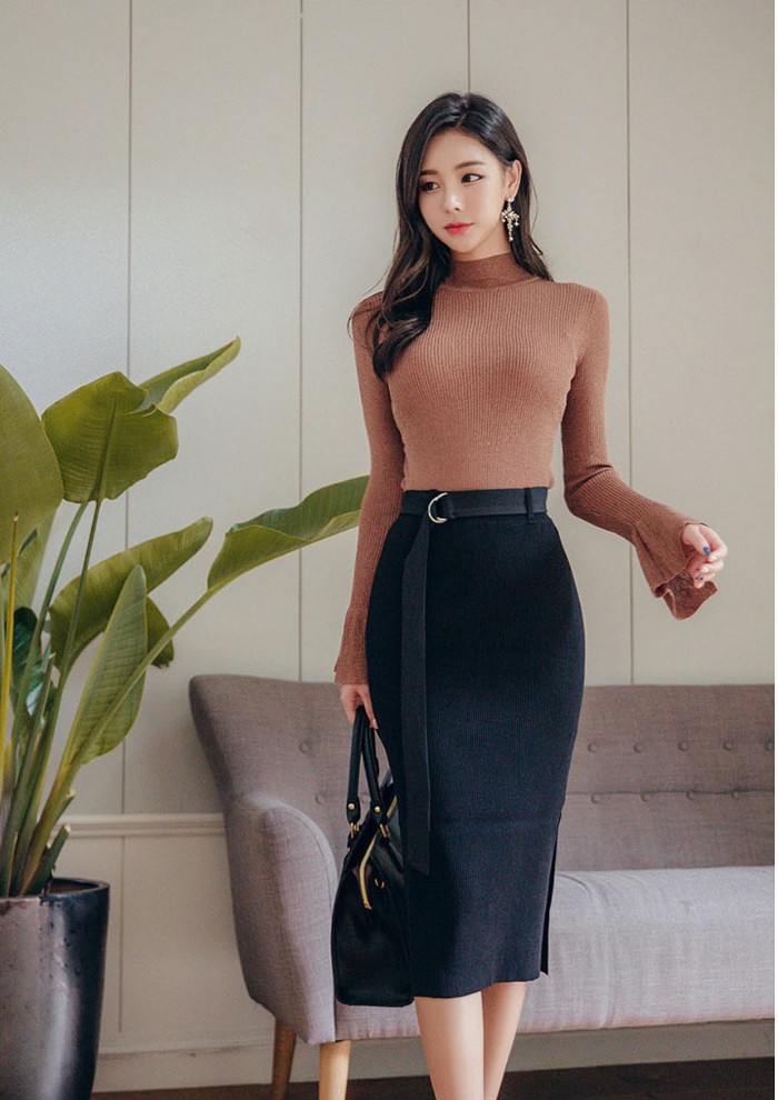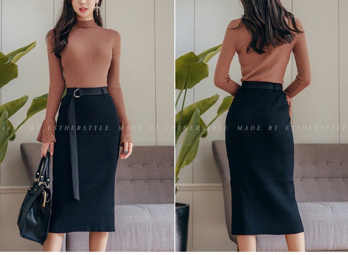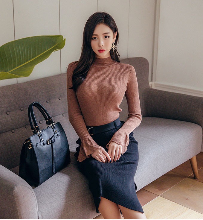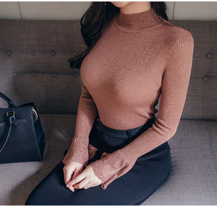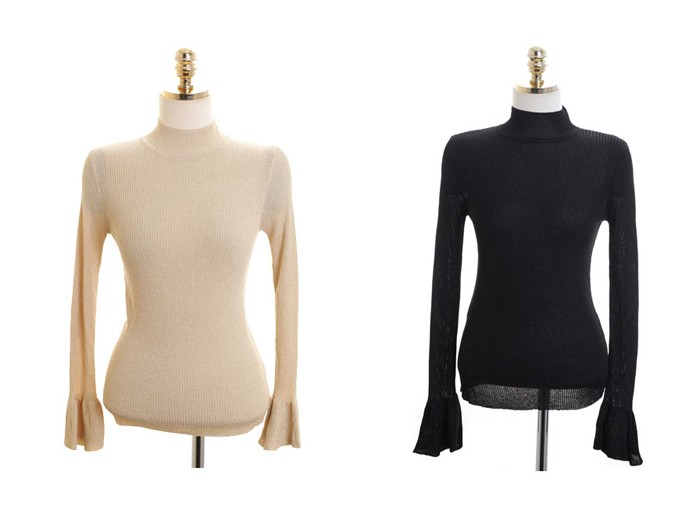 商品名:ニット トップス タートルネック 長袖 無地