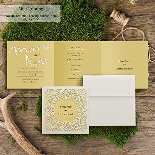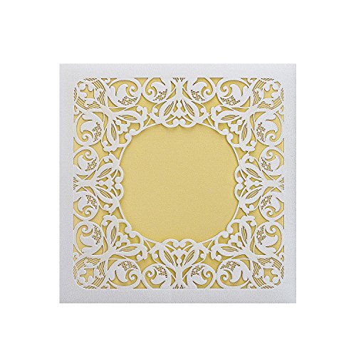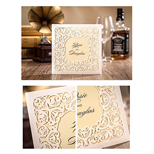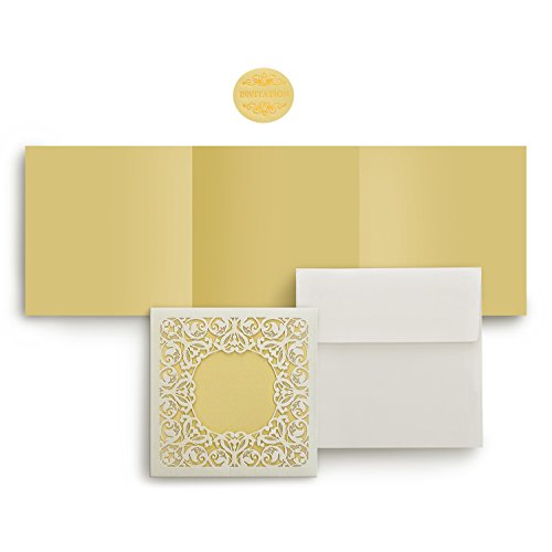 Weddingbob 5Pcs Laser Cut Wedding Invitations Cards Kit for Bridal Shower Dinner with Envelopes and Printable Paper Noble golden square invitation in hollow-carved design (5)
