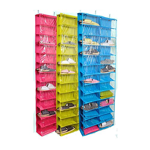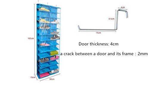 -. Feature : Material:Oxford fabric,Size:56*15*160cm(22*5.9*63inch). / 26 clear PVC compartments, Over the door, Can storage 26 pairs shoes. / Note: Before buying please make sure the door wide and size fit to our HOOK whether or not, size on the left picture. / Three beautiful colors can choose, it can be washable if it is dirty! / Versatile design also great for storing accessories, craft supplies, electronics, toy, sock, tie, and more