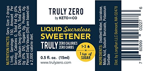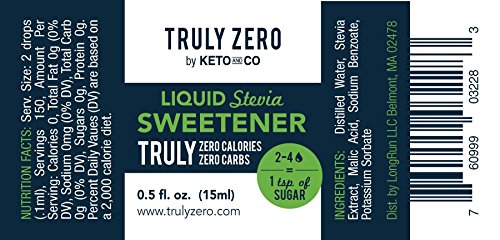 -. Binding : Grocery -. Brand : Keto and Co -. Feature : Tiny Dropper fits conveniently in a purse or backpack -. Label : Keto and Co -. Manufacturer : Keto and Co -. PackageQuantity : 1 -. ProductGroup : Grocery -. ProductTypeName : GROCERY -. Publisher : Keto and Co -. Studio : Keto and Co -. Title : Truly Zero Liquid Sweeteners