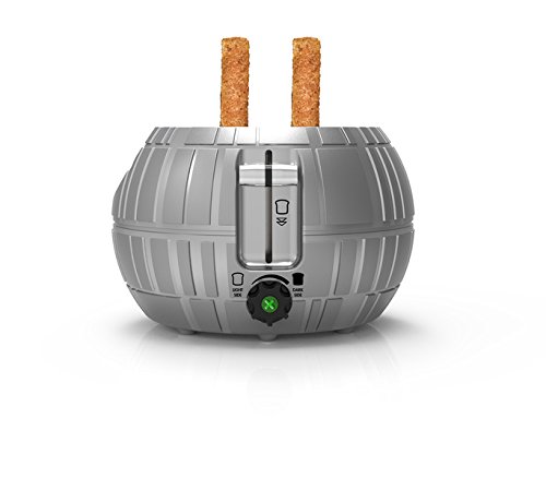 That's no Moon! it's a space station. You really haven't experienced toast until you have dropped it in one of the most recognized weapons of destruction in fiction. Grab your favorite bread, bagel or pastry and pop into this extra-large chassis and watch as your toast flies out of the death Star with a tie Fighter logo on one side of each piece.Feature