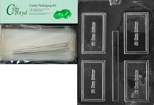 Cybrtrayd "No.1 Busdriver" Business Card Chocolate Candy Mold with Packaging Bundle of 25 Cello Bags, 25 Silver Twist Ties and Chocolate Molding Instructions