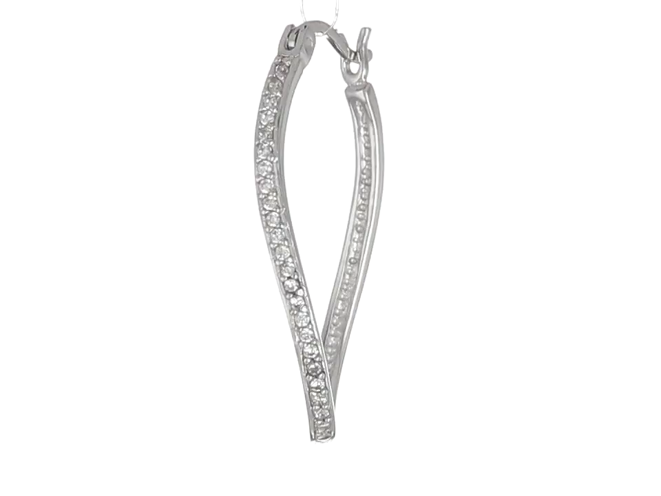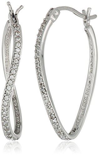 Sterling Silver Cubic Zirconia Wavy Oval Hoop Earrings