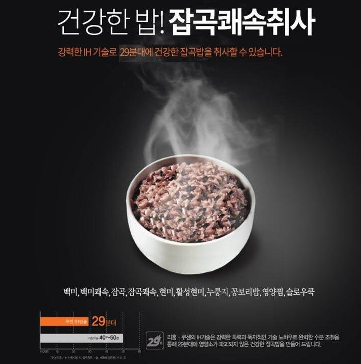Powerful IH technology allows you to cookhealthy japkkokppap in just 29 minutes.