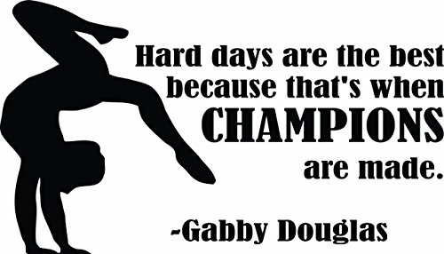 Gabby Douglas Hard Days Make Champions Quote- Gymnastica Inspirational Vinyl Wall Sticker Decal For Home Decor or Girls Bedrooms - 8 inch x 14 inch