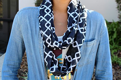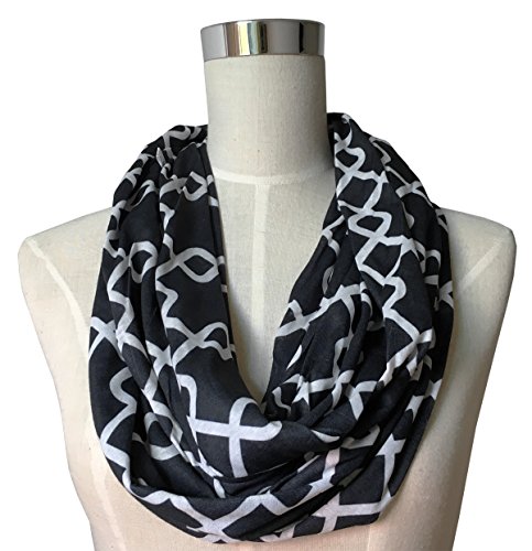 Binding : Apparel Product Description Add a little mix, fun, and sophistication to any ensemble this upcoming season! The women's infinity scarf with zipper pocket is one of the best selling fashion scarves on amazon today. This fashion scarf features a brightly colored and functional infinity scarf design, detailed with a unique quatrefoil, diamond shape pattern that's perfect for summer, fall, winter, and spring. Fashionable and functional, this scarve features a hidden zipper pocket along the seams for lightweight storage purposes to hold all your travel items like your smartphone, passport, money, cash, coin purse, keys, or wallet, when you're on the go! These scarves make the perfect gift idea for Women, Ladies, Girls, Teens, Children, Wife, Mom, Daughter, Girlfriend, or Her. This fashion scarf is sure to be the talk of the town at the office, girls night out, or your next party. The lightweight, trendy, design of this infinity scarf is the perfect circle scarf for your neck and most importantly comfort. This scarve may be used as a wrap, neck scarf, tied scarf, or knotted. Most importantly buying this scarf from the official Pop Fashion Store will offer you 100% MONEY-BACK GUARANTEE. Shop with confidence at the Pop Fashion Amazon Store as we always offers the best deals, discounts, sales, and prices on all our amazon scarves everyday with FREE SHIPPING via Amazon Prime. This Scarf is brought to you by the official Pop Fashion Store, a leader in affordable designer inspired fashion, scarves, infinity scarves, accessories, and clothing. Our team of dedicated customer advocates work around the clock to ensure that every customer is happy shopping at Pop Fashion. 0