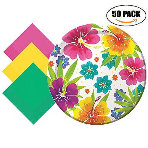 -. Title : Tropical Luau Hawaiian Summer Theme Party Pack- Tableware for 50 Guests- Plates and Napkins