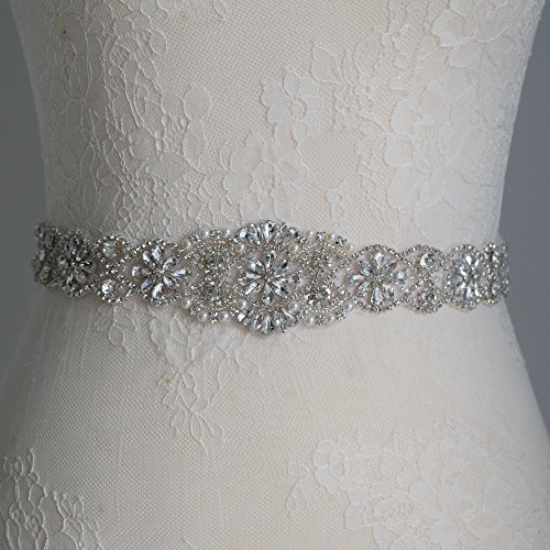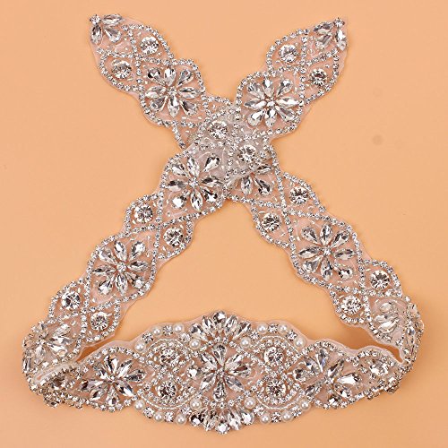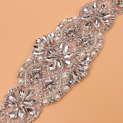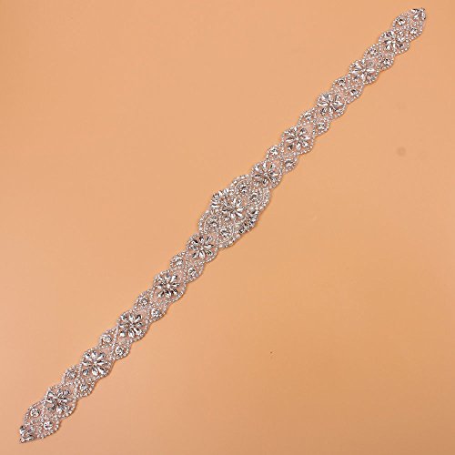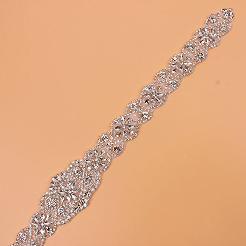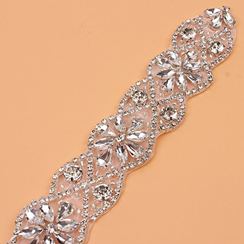 Sewing Bridal Rhinestone Appliques-DIY Wedding Dress Decorative or Sashes-Sliver-1 Piece(23.4"2"in)
