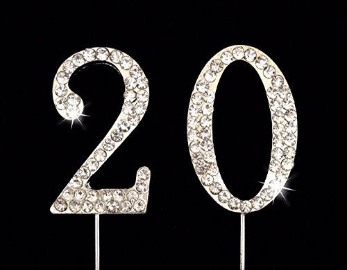 20th Birthday / Wedding Anniversary Number Cake Topper with Sparkling Rhinestone Crystals - 1.75