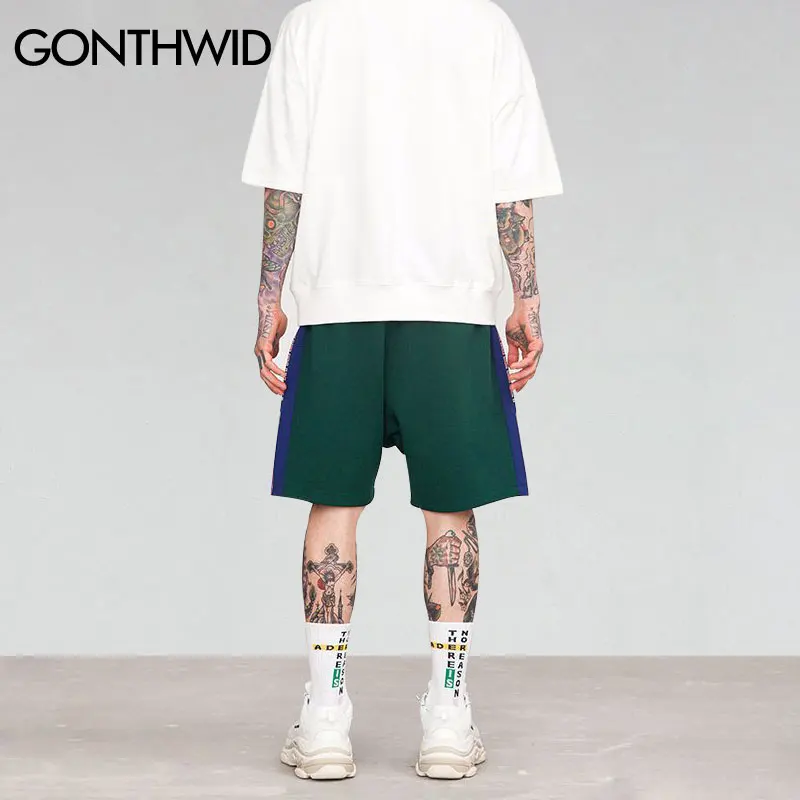 Fashion:Side Panel Print Color Block Patchwork Shorts