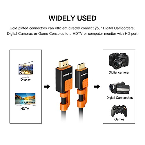 ★CONVENIENT CONNECTION -- Gold plated connectors can efficient directly connect your Digital Camcorders, Digital Cameras or Game Consoles to a HDTV or computer monitor with HD port.