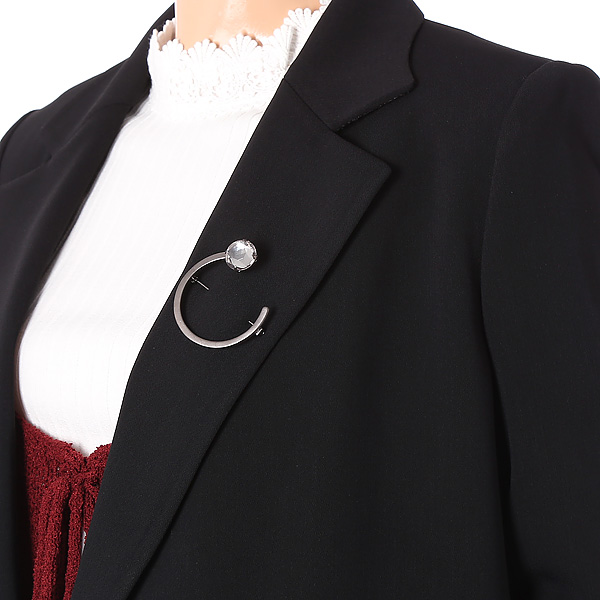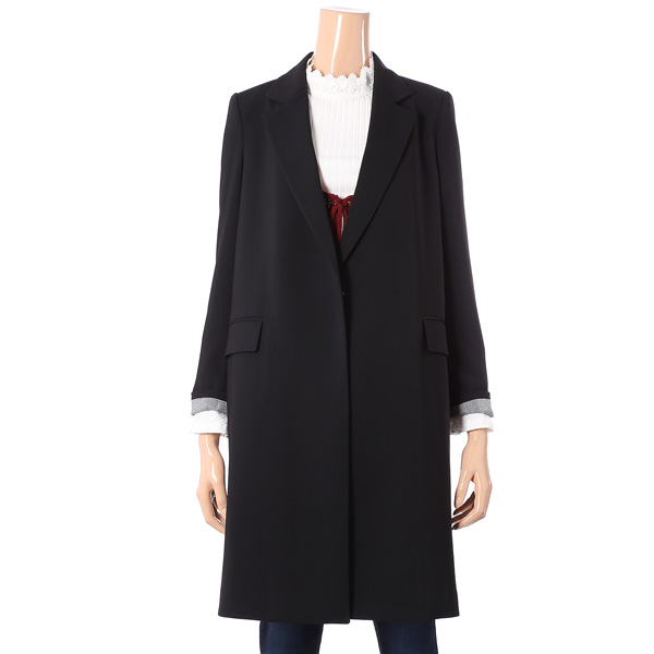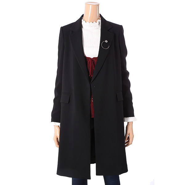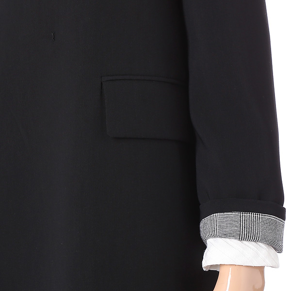 브로치 소매 체크배색 롱자켓(M79JKM102C)