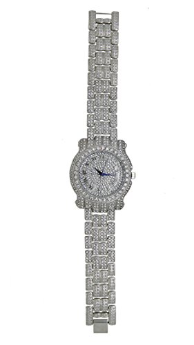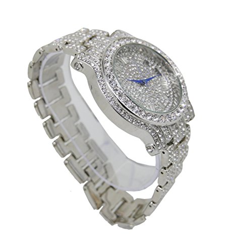 Ice'd Out Watch and Matching Bracelet fit for a King!! Mens Hip Hop Iced Out Silver Tone Simulated Diamond Watch & Bracelet Gift Set - L0504B Silver This watch has so many rhinestones that it will bling bling day and night. Four Corners on side of watch case is elegantly decorated with shiny diamond like studs giving it more glitz and glamour. Dial is also blinged out and an easy reader with Roman Numerals and Classy Royal Blue Hour, Minute and Second Hand. Climb the ladder to success Bling'd Out Style!Feature