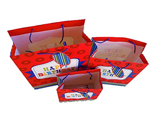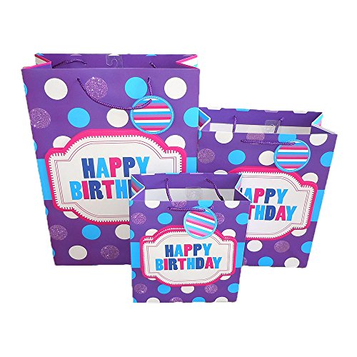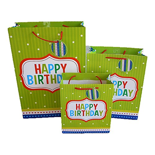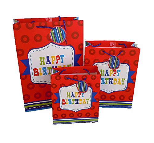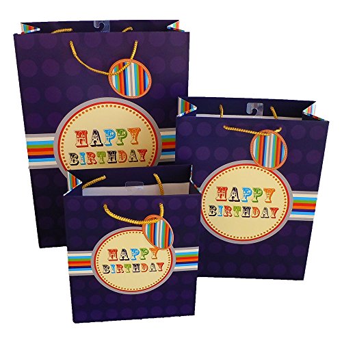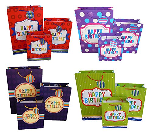 Set of 12 Birthday Gift Bags with Handle and Gift Tag, Comes with 4 Medium, 4 Large, & 4 Jumbo Size Bags (12, All Four Colors)