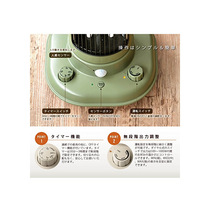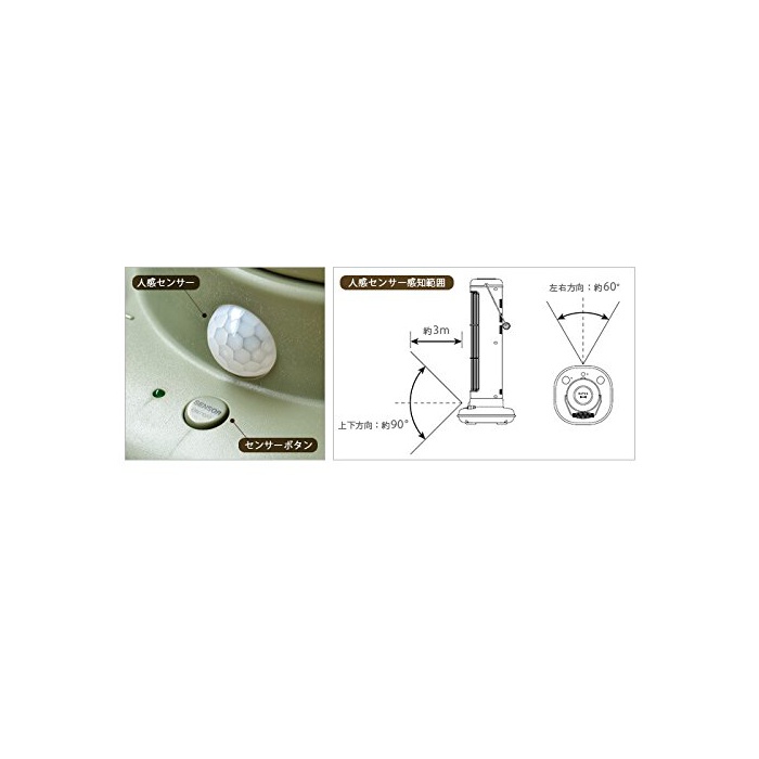 【기능】출력무 단계 조절(500W~1,000W) /팬 내장 /타이머:30분~3시간무 단계 설정 /인감센서 운전 교환 /잘라 잊어 방지 타이머(인감센서ON시6시간) /전도 시 자동 운전 정지 기능 /온도 스쳐 승정지 기능 /인감센서 감지 범위:상하 방향45°고, 좌우 방향60° /인감센서 감지 거리:약3m /인감센서 시간:약2분