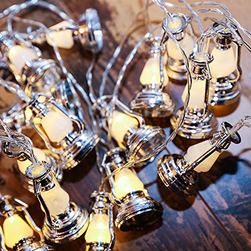 Christmas Festival 20 LED Lantern String Light, Battery Operated (Silver)