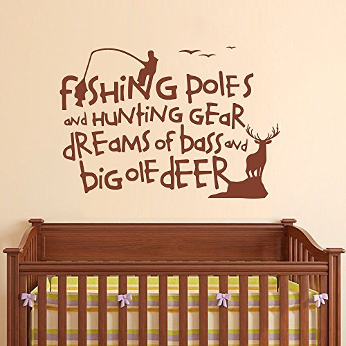 -. Title : Wall Decal Decor Fishing Wall Decal Quotes - Fishing Poles And Hunting Gear Dreams Of Bass And Big Ole Deer - Living Room Baby Nursery Vinyl Wall Sticker(brown, 15.5"h x22"w)