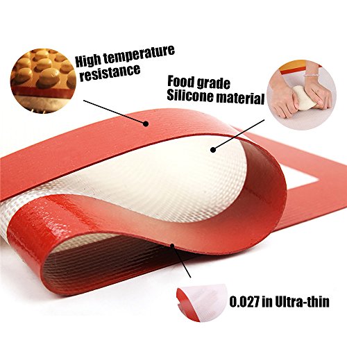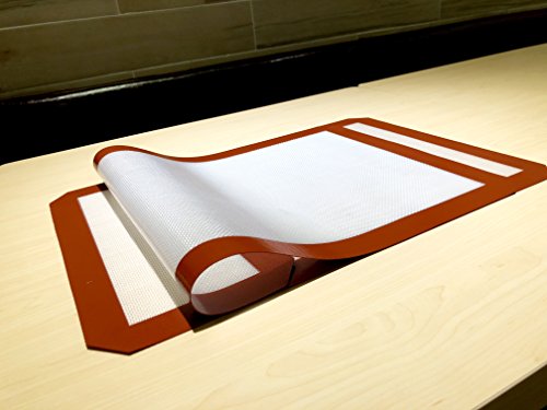 ✔2Pack of medium baking mats(16.5” x 11.65”,thickness 0.027”) fits for half-sheet pans oven or microwave.Works well for candy/bun/bread making/cookie/baking/Macaron.