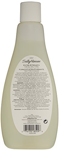 A Closer Look: Sally Hansen Extra Strength Remover has a special blend of pro vitamin B5 and vitamin E that helps dissolve polish and replace needed moisture to nails. The essential nutrients result into healthy looking nails and cuticles.