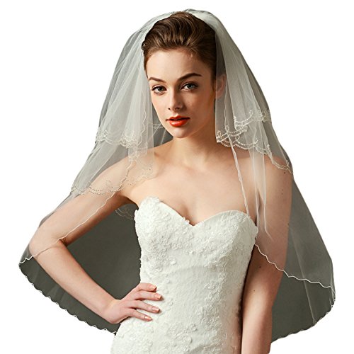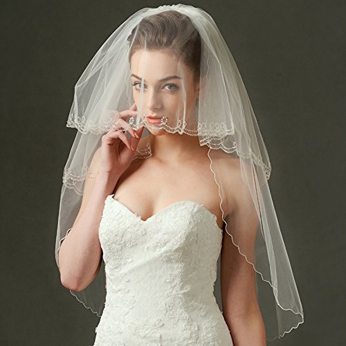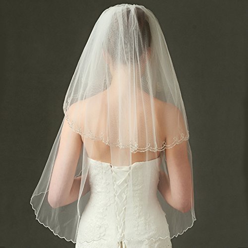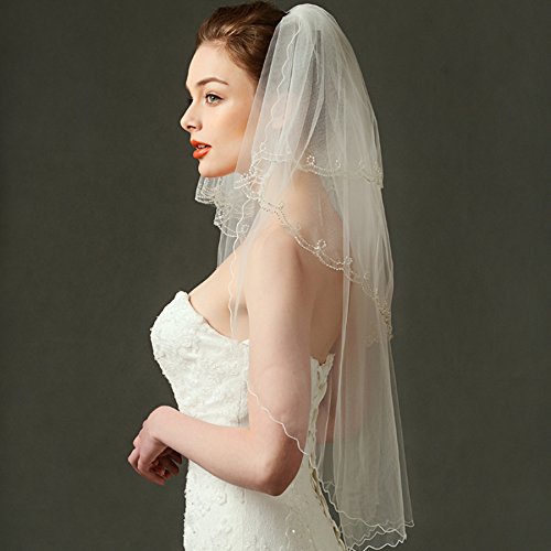 (Fishlove)/Accessories/Scarves/DIRECT FROM USA/Fishlove Ivory Beaded Mantilla Veils Catholic Bridal Wedding Veils With Comb V35