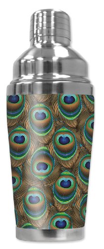 -. Title : Mugzie 1208-SHA "Peacock Feathers" Cocktail Shaker with Insulated Wetsuit Cover, 16 oz, Black