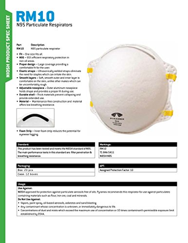 Pyramex RM10 N95 Particulate Dust Masks -Cone Respirator Masks (20 Pack)