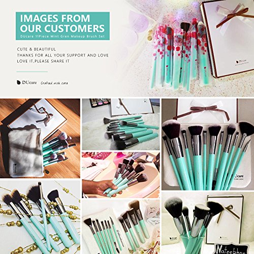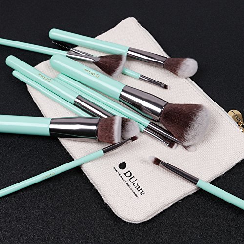 DUcare-crafted with care: The key to achieve the flawless look you desire not only needs good cosmetic, but also high quality makeup brush tool. DUcare brush undergoes multiple production process to ensure its high quality. Brush set application : Flat foundation brush (4.86 inch): With round flat top, applying for liquid or cream foundation to flat areas of the face such as the forehead and cheeks powder brush (5.7inch): With big and round bristles, perfect for applying and setting face makeup as well as creating a great base angled blush brush (5.37 inch): Perfect fit the curves of your cheekbone to expertly defined, shape & contour your cheek area highlighter brush (5.25 inch): With small round bristles, apply highlights and colors to nose or forehead or the hollows of the cheeks. Fan brush (5.64 inch): Perfect for sweeping a light dusting of powder or pigment from forehead to cheek to chin, for an airbrushed finish Smokey eye brush (5.19 inch): Great for applying bases or primer or cream or colors on jawline, no sewing, eyelid & the area hard to reach flat eyebrow brush (4.65inch): Perfect for shaping and filling in your brows with precise, defined strokes while allowing for even product/color distribution double eyebrow brush (4.47 inch): With angled flat top bristles, apply for detailing eye liner or eyebrow eyeshadow brush (4.65 inch: Apply shadow all over the lid with the shading brush then flip it over & use the defining brush to add contour to the eyes lip brush (4.68 inch): Perfect for precision application & depositing lip color while creating definition eyeliner brush (4.65 inch): Pointed tip allows for easy & clear access to the eyes. The nice sturdy handles are wooden & extremely comfortable to hold, ensures a long lasting and durable. Not shedding, non-porous & not trap or absorb product, apt for maintain, storage and clean. Perfect idea for yourself, your girlfriend, mother, sisters or friends. Friendly customer service.Feature