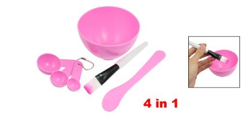 -. Feature : Product Name : Facial Mask Tool Set;Main Material : Plastic / Main Color : Pink, White, Black;Bowl Size : 10 x 6 cm / 3.9" x 2.4" (D*H) / Stick Size : 16 x 2.5 cm / 6.3" x 1" (L*W);Brush Size : 15 x 1.5 cm / 5.9" x 0.6" (L*W) / Spoon Size : Max.: 7.5 x 4 cm / 2.9" x 1.6" (L*W)Min.: 6.5 x 2.3 cm / 2.5" x 0.9" (L*W);Net Weight : 46g / Package Content : 1 x Mixing Bowl1 x Mask Stick1 x Mask Brush(Random Color)3 x Measuring Spoon