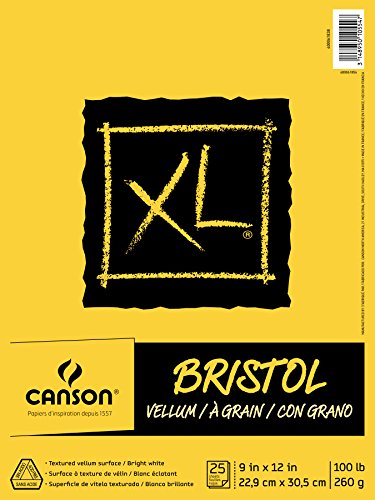 Canson XL Series Bristol Vellum Paper Pad, Heavyweight Paper for Pencil, Vellum Finish, Fold Over, 100 Pound, 9 x 12 Inch, Bright White, 25 Sheets