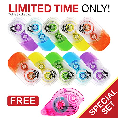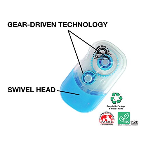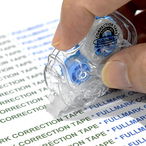 [SPECIAL LIMITED EDITION] Fullmark Correction Tape dispenses white tape that provides complete coverage for your correction needs. It is convenient and mess-free that enables immediate writing. The Fullmark correction tape is equipped with a translucent tip and premium quality tape that is precise and break-proof. Its gear-driven technology prevents over-run problems. Each correction tape is 0.2 Inches X 19.7 Feet. Packed in bags of 10 with assorted colors with FREE double-sided glue roller.Feature
