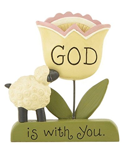"God is with You" Sheep/Flower on Base, 2-3/4 x 3-1/4 Inches