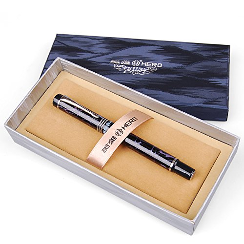 -. Title : New Pretty Hero Purple & Black Fountain Pen With Medium Nib Gift Box Birthday Present