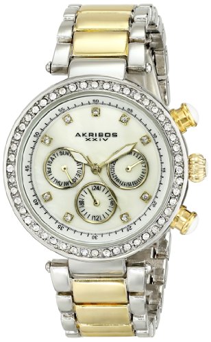 Studio : Akribos XXIV Publisher : Akribos XXIV Binding : Watch Product Description This lovely women's watch by Akribos XXIV features a Mother-of-Pearl dial with genuine crystal hour markers and a row of genuine crystals on the bezel. The multifunction sub dials and gorgeous bracelet brings together this gorgeous timepiece. 0