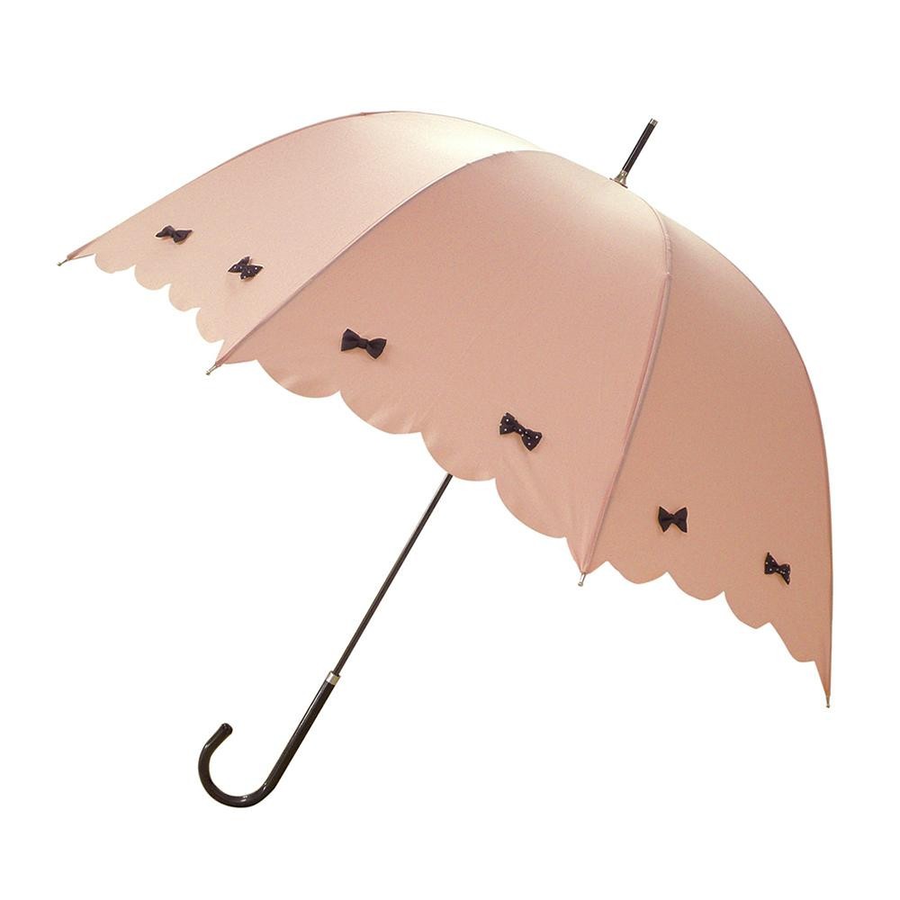 fk094igrjsリボンがあしらわれた、可愛らしいデザイン留め具のストーンボタンもポイントです サイズ (約)親骨:58cm、傘の直径:90cm 個装サイズ:7.0×71.0×7.0cm 重量 約255g 個装重量:350g 素材・材質 親骨:グラスファイバー(8本使用) 生地:ポリエステル 仕様 開閉:手開き 深張り 生産国 中国 スカラップデザインの、深張りタイプの長傘 リボンがあしらわれた、可愛らしいデザイン留め具のストーンボタンもポイントです
