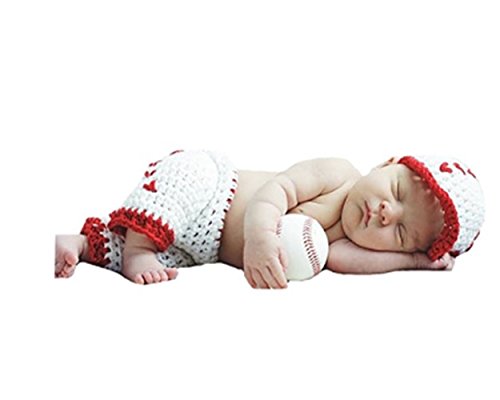 Eyourhappy Baby Handmade Crochet Photography Props Costume Baseball Sports Outfits Hat Cap Pants