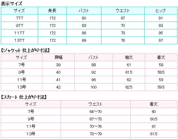 | これは出来上がり寸法です。 出来上がりサイズは±2%の許容がございます。 着用モデルのサイズは 身長164cm、バスト81cm、ウエスト56cm、ヒップ80cmで9号を着用しています。 |