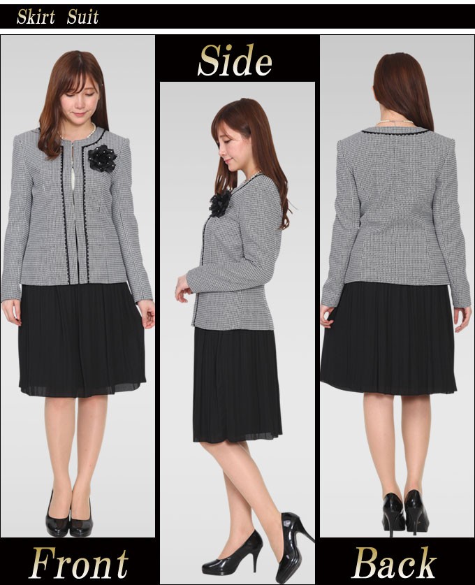 | コメント | 長身の方向け、セレモニーであまり浮きたくないママ向けのシンプルなフォーマルスーツです。 ジャケットは上品なレーステープを施したドビー織の上品なデザイン。 背中をスッキリ見せる両サイド切替を採用しています。 肩パット有、前合わせはホック留め、左右2箇所ポケット、総裏地仕様になります。 スカートはジョーゼット素材のプリーツデザイン。 スカート両サイドゴム入り、サイドファスナータイプになります。 お食事会、結婚式 七五三 などの大切なシーンや コサージュを付けて卒園式 卒業式 入園式 入学式の学校行事スーツにもお勧めです。 ジャケット&スカートのセットです。(コサージュは別売りになります。) |
