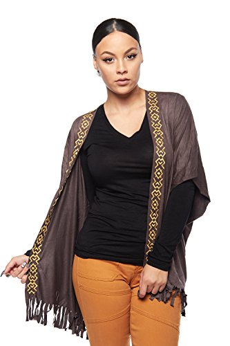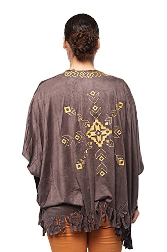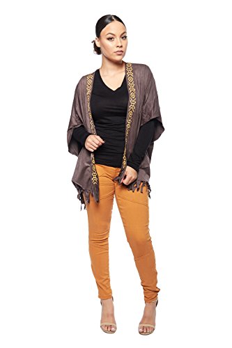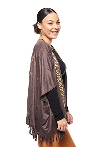 (GENx)/Women/Outerwear/DIRECT FROM USA/Womens Geometric Suede Oversize Fringe Kimono Cardigan 15P2230